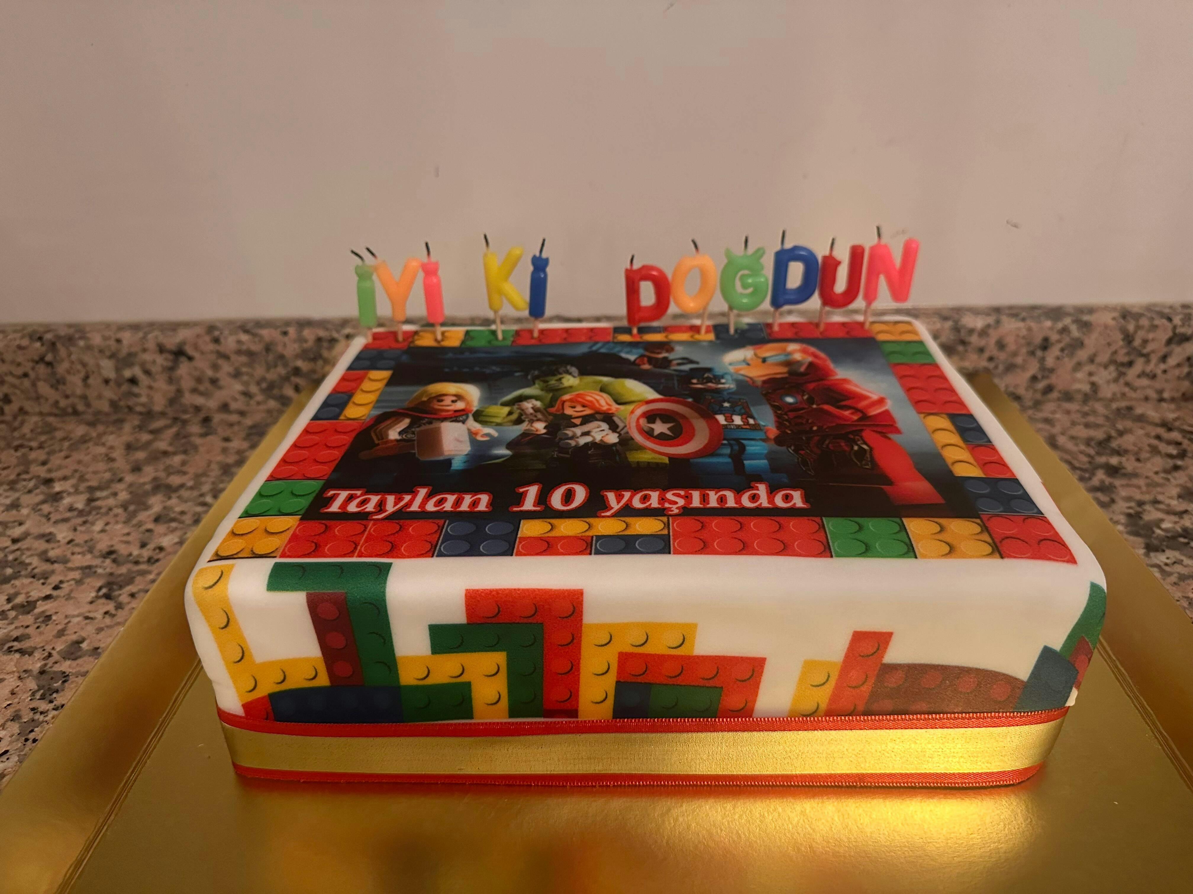 Dikdörtgen formdaki Lego tasarım pasta modelimizin içeriğini ve boyutunu seçeneklerimiz arasından tercih edebilir, pasta üstü yazısı ekleyerek hediye Marvel temalı pasta sahibi için özelleştirebilirsiniz. Teslimat adresi ve tarihi belirterek web mağazamız üzerinden online siparişinizi verebilir, ısı yalıtımlı ambalajında taze olarak teslim alabilirsiniz. Profesyonel ekibimiz tarafından hijyenik koşullarda özenle hazırlanan siparişinizi keyifle ve güvenle tüketebilir, Türkiye'nin dilediğiniz şehrine hediye Marvel pasta gönderebilirsiniz. Kişiye Özel Lego Pastası adlı sevilen bir diğer modelimize de göz atabilirsiniz!