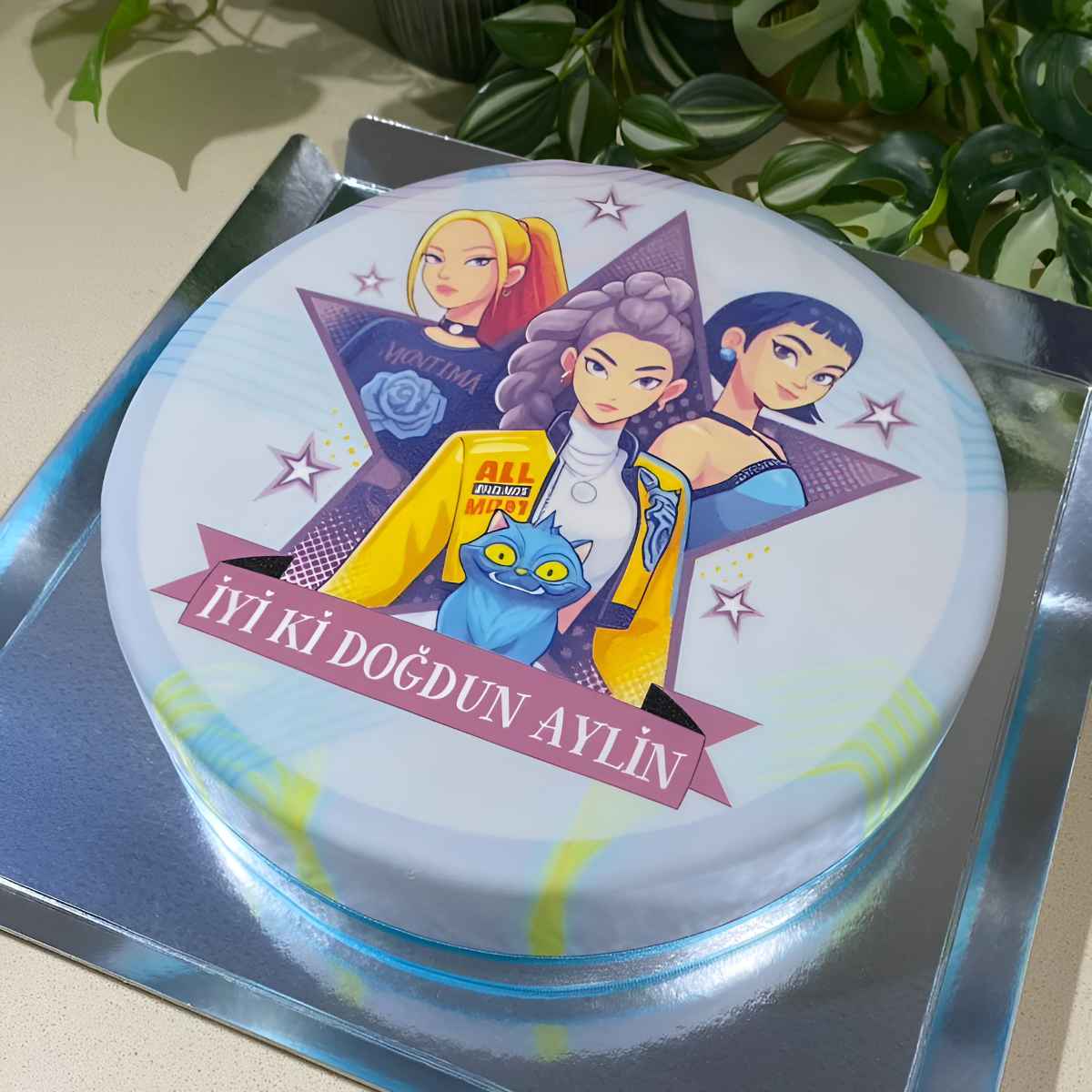 Kahramanlığı, cesareti ve tarzıyla dikkat çeken Huntrix kızları bu pastada hayat buluyor! Özellikle K-pop kız müzik gruplarını seven kızlara özel tasarlanan bu Huntrix pasta, doğum günü kutlamasını bambaşka bir seviyeye taşıyor. Farklı güçlere sahip kadın karakterlerden oluşan Huntrix ekibi, genç kızlara ilham veren duruşlarıyla bu özel HUNTR\X pastanın üstünde yer alıyor. Mor, sarı ve mavi tonlarıyla zenginleşen tasarım, hem lezzet hem de görsel şölen sunuyor. Üstelik üzerine kişiye özel isim de yazdırılabiliyor!
