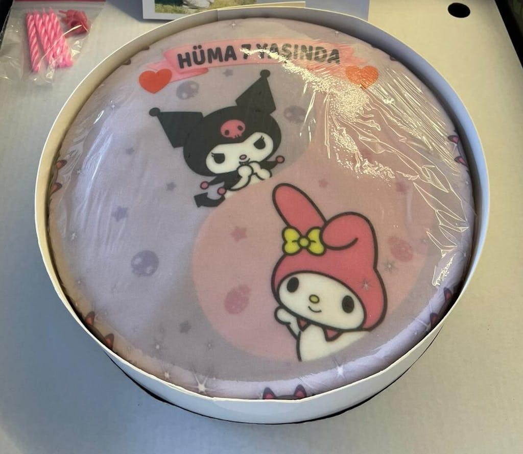 Yuvarlak formdaki Kuromi resimli pasta modelimizin boyutunu ve içeriğini seçeneklerimiz arasından tercih edebilir, üzerine dilediğiniz pasta üstü yazısı ekleyerek kişiselleştirebilirsiniz. Profesyonel pastacı ekibimiz tarafından özen ve sevgiyle hazırlanan siparişiniz ısı yalıtımlı ve korunaklı ambalajında tazelik ve lezzet garantisiyle sizlere teslim edilir. Kuromi parti konseptinizi tamamlayacak olan bu pastayı teslimat tarihi ve adresi belirterek veya mağazadan teslim seçeneğiyle web mağazamız üzerinden kolayca online sipariş verebilirsiniz. Sayfamızdaki Kuromi Kalpli Pasta da ilginizi çekebilir.
